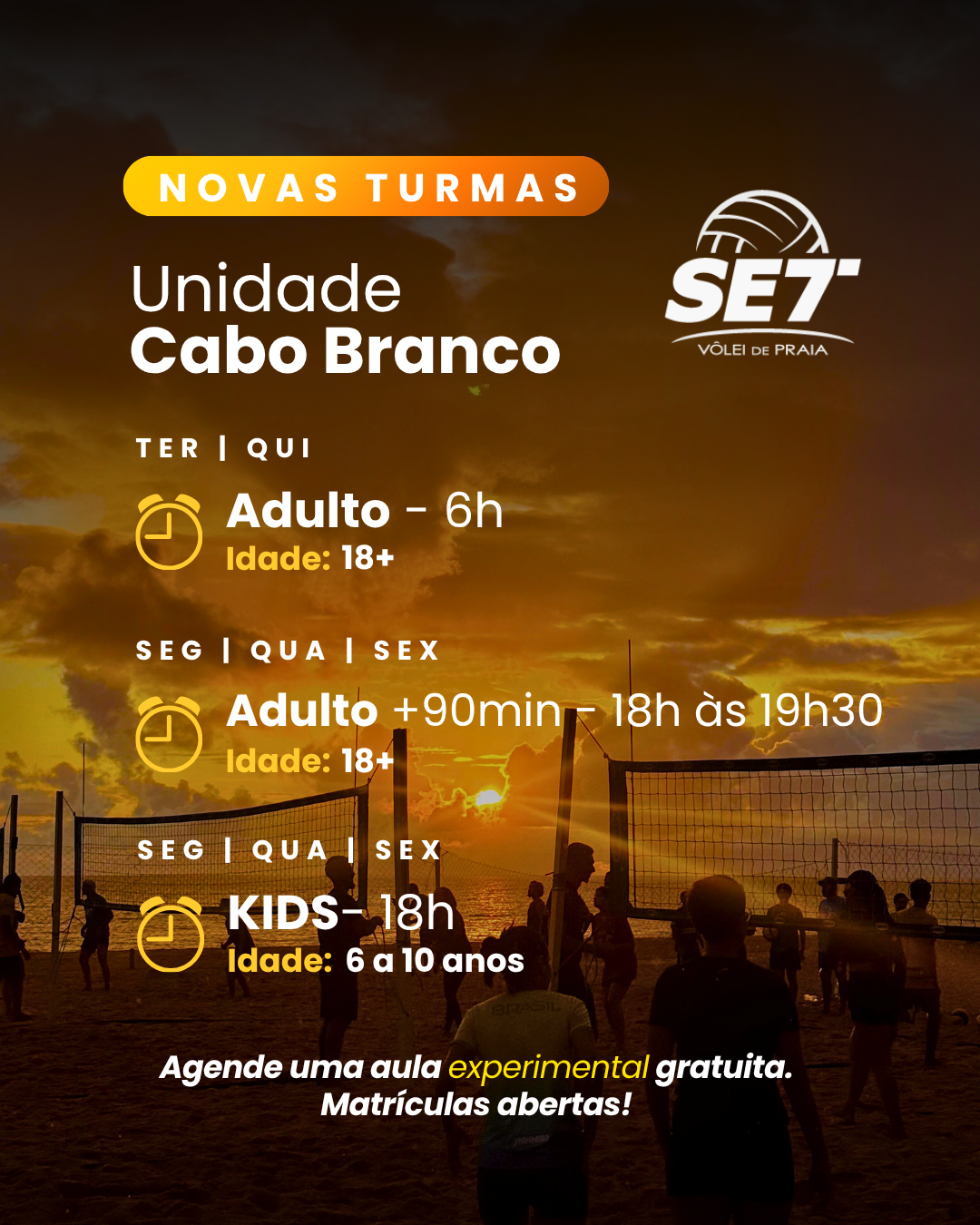 O maior Centro de Treinamento de Vôlei de Praia da Paraíba, há mais de 10 anos, atuando em 5 unidades em João Pessoa (Cabo Branco, Bancários, Altiplano, Bessa e Intermares).